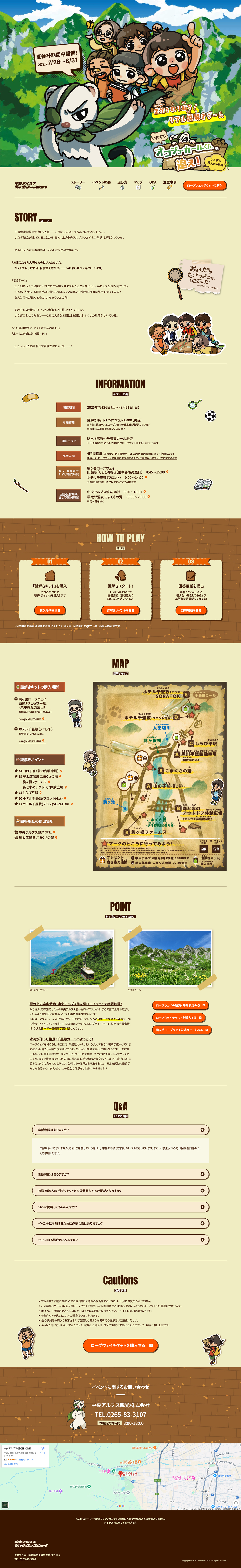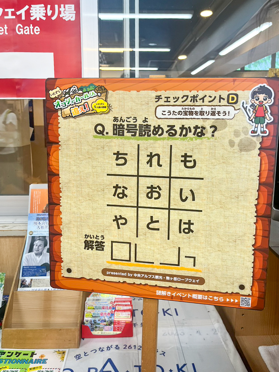 中央アルプス観光 「宝物を取り返せ!リアル謎解きゲーム いたずらオコジョ・カールくんを追え!いたずら5人組の挑戦」